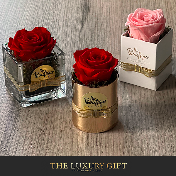 Elegante y delicada cajita con 1 rosa preservada.