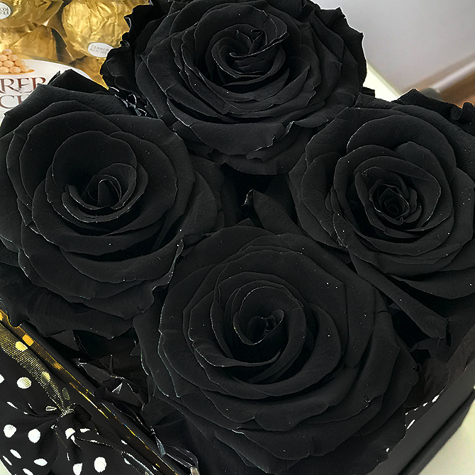 4 rosas preservadas NEGRAS.