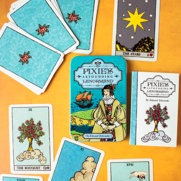 Creado con cariño e ilustraciones de la baraja de Tarot Smith-Waite® y "The Golden Vanity", esta encantadora baraja de 36 cartas petit Lenormand rinde homenaje a Pamela Colman Smith. El folleto de 132 páginas incluye palabras clave y significados ampliados para temas de amor y carrera. Esta baraja única de Lenormand viene en una adorable lata.