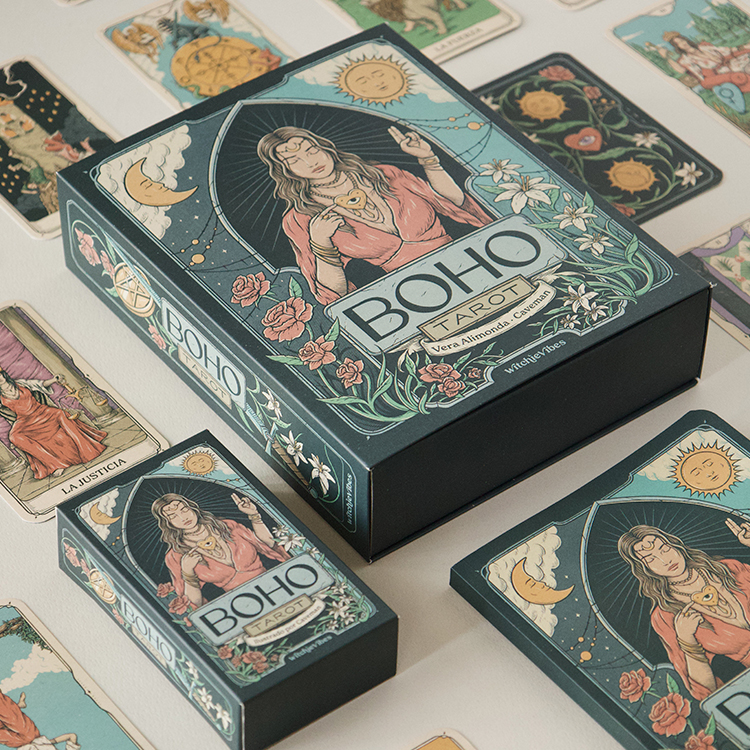 Este mazo no solo respeta la estructura simbólica del Rider Waite Smith, sino que actualiza sus arquetipos para hacerlos más diversos, contemporáneos y humanos. La bohemia como estética y como forma de habitar el mundo impregna cada trazo, color y textura.