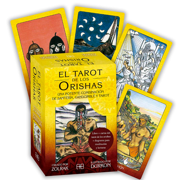 LIBRO + CARTAS DEL TAROT DE LOS ORISHAS + DIAGRAMA PARA MEDITACIÓN Y LECTURASEl tarot de los orishas es el único mazo de cartas de tarot de origen yoruba. Este tarot te permitirá emplear las poderosas energías de la santería el candomblé brasilero, religión que se originó en el pueblo yoruba del oeste de África. El libro funciona como una guía transformadora que abre la puerta al significado y origen de cada una de sus 77 maravillosas cartas, ilustradas con llamativos colores.Las 13 primeras cartas de la Arcana Mayor describen los seres sobrenaturales u "orishas", que representan arquetipos sagrados de intensa energía. Las otras 12 cartas de la Arcana Mayor retratan símbolos como el Karma, la Tierra y el Ángel de la Guarda. Las 52 cartas de la Arcana Menor, por su parte, están divididas en cuatro elementos: Agua, Tierra, Fuego y Aire.Este rico e imponente tarot incorpora imágenes del candomblé, la numerología, la astrología y otros aspectos de la metafísica para describir arquetipos capaces de invocar fuerzas espirituales, gracias a las cuales descubriremos los misterios de la Vida y las energías sagradas que modelan nuestra existencia. Considerado por muchos como una herramienta altamente poderosa para la magia y la adivinación.