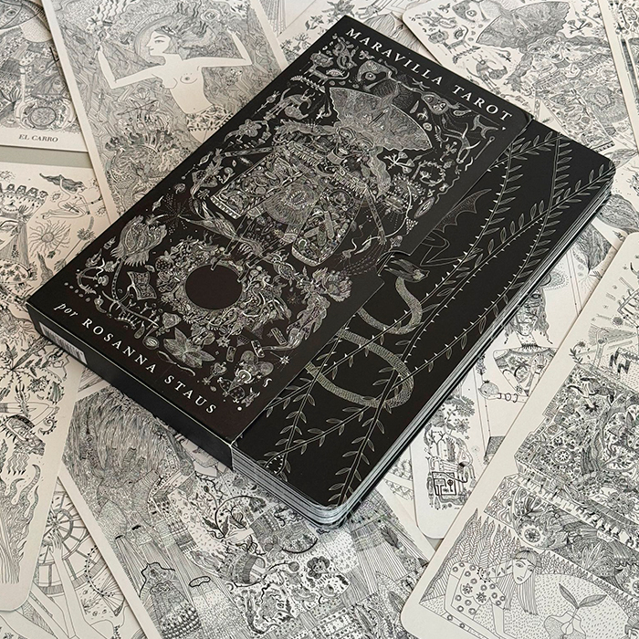Mucho antes de que las cartas del Tarot sirviesen para despertar fuerzas ocultas, los mazos se entendían, sencillamente, como obras de arte para disfrutar durante el juego. La artista alemana Rosanna Staus recupera esta simbología original en Maravilla Tarot, una obra gráficamente deslumbrante, donde el arte y la poesía se entrelazan para reimaginar y resignificar el sentido de las cartas de este popular juego nacido en el siglo XIV.